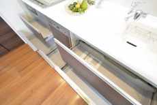 水栓は浄水器一体型、ビルトインタイプの食器洗浄機も設置されています。