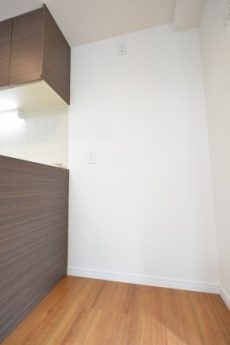 入って右側には、トールサイズのシューズボックスが設置されています。照明は人感センサー付なので、お荷物が多い時でもスイッチを押す手間が省けてなかなか便利です!