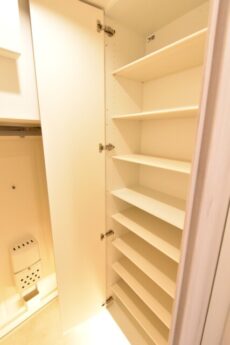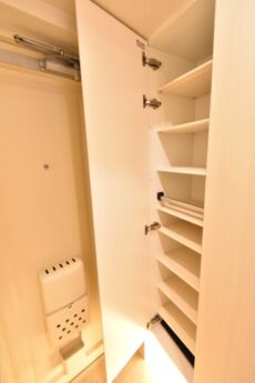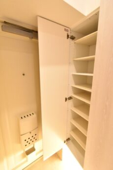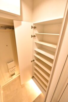 左手にはトールサイズのシューズボックスが設置されており、お手持ちのブーツ