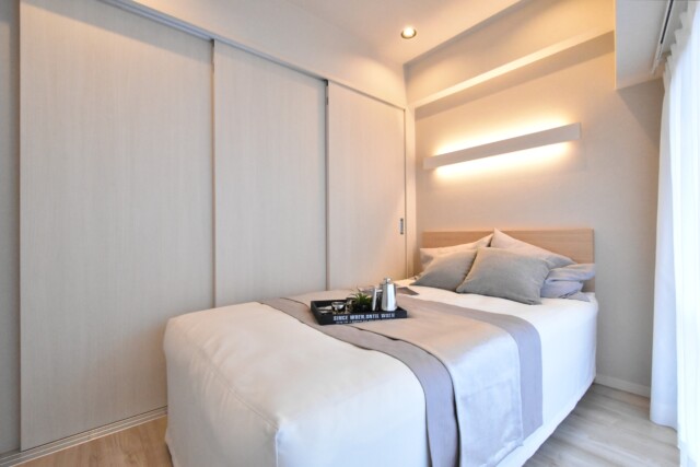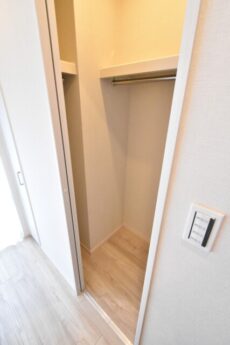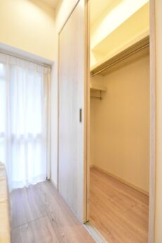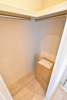 ベッドルームには大型のウォークインクローゼットがあります。奥行きがしっかりとあるので、物を選ばず収納できそうです。雑多になりがちなものはこちらに収納してしまえば、お部屋をいつもスッキリと保てそうです。