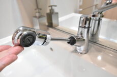 水栓はキッチン同様、蛇口が引き出せるタイプが採用されています。