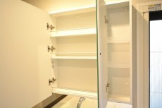 洗面化粧台は鏡の裏、洗面ボウルの下と収納たっぷり。