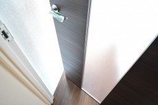 廊下を右方向へ。物入れ、洋室、トイレ、洗面室等々の扉が並んでいます。