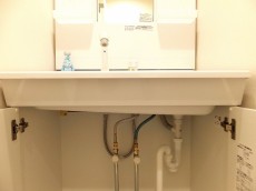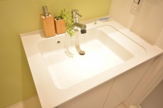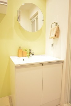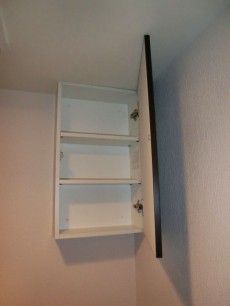 洗面化粧台は3面鏡の裏が一面収納になっており、ゴチャゴチャしがちな