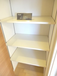 廊下には日用品の収納によさそうな収納棚もつくられています。