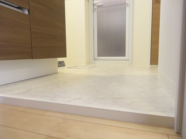ドアを開けると、アーバンな空間が広がっています。玄関床に施されたモダンな