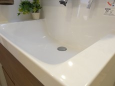 継ぎ目のないトゥルンとした洗面ボウルは、見た目の美しさもさることながら
