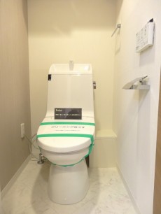 【トイレ:TOTO製の洗浄機能一体型・吊り戸棚付き】