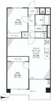 ここで間取りのご紹介です。2LDK、46.00㎡。
