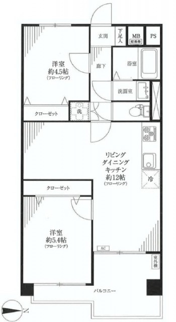 います。扉の外は図面上バルコニーですが、室外機が置いてあり、けっこう面積を