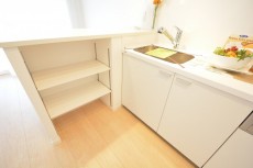 リビングダイニングの入口入って左側は対面式のキッチン。