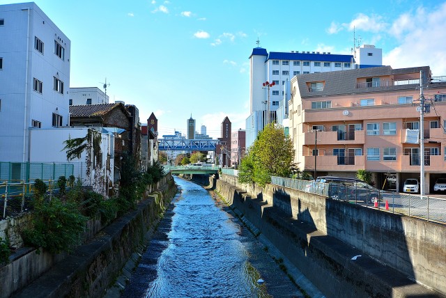 秋は川沿いに植えられた樹木の紅葉が鮮やかですよ。