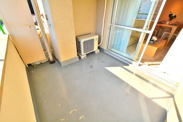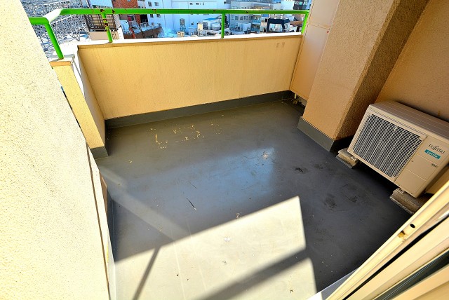 最後にリビング、約5.4帖の洋室に面しているバルコニーに出てみます。東向き。