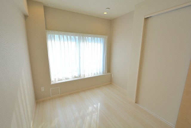玄関側・約4.7帖の洋室。若干コンパクトですが、がっつり収納ついてますんで!