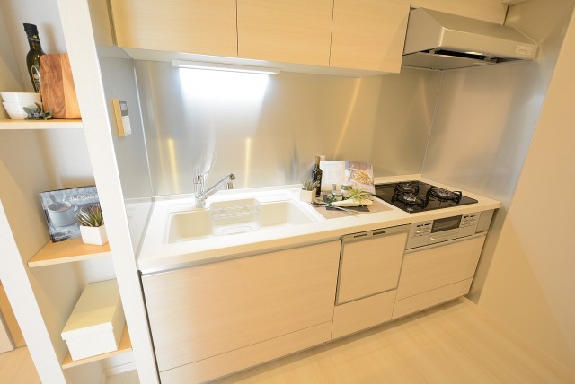 【キッチン:三口コンロ・グリル・食器洗浄乾燥機付き】