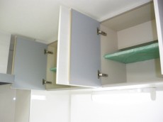 器一体型水栓、上部には吊戸棚と機能面でも充実しています。ルクルーゼの白い