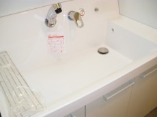洗面化粧台は、環境に優しいエコハンドルを採用。継ぎ目のない洗面ボウルは、