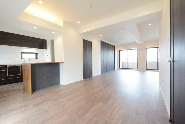 こちらが約34.6帖のリビング・ダイニング・キッチンとなります。