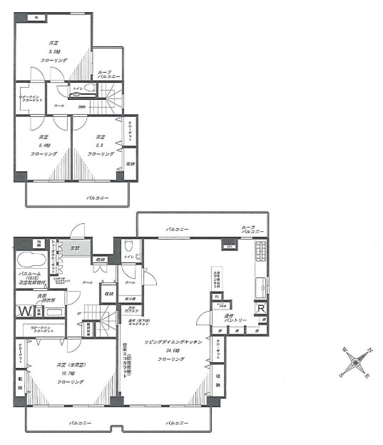 お部屋は6階と7階、間取りは4LDK、専有面積は163.03㎡となっております。