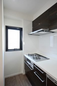このお部屋の規模を見ていると、コンロ3つで足りるかな?と心配になってしまいます(笑)最近は電子レンジやオーブンなども駆使してお料理するのがトレンドですから大丈夫ですかね。