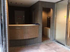 オートロックのエントランスを進むと、広々としたエントランスホールが迎えてくれます。ダウンライトが高級感を出していますね♫