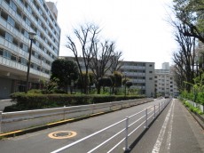右側に、戸山アパート群の敷地が広がっています。どこを見ても花と緑に彩られ、