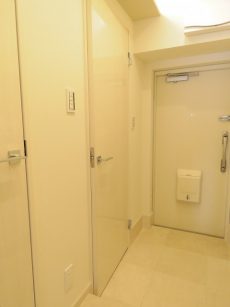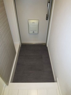 ボックスが配されています。傘や靴べらなどを置くためでしょうか、玄関ドアとの間に