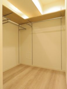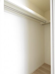 LDKと同じ南東向きバルコニーに面したお部屋です。朝起きてカーテンを開ければ朝日で気持ち良く目覚められそうですね。収納はウォークインクローゼット!L字型にハンガーパイプが付いた約0.8帖のスペースです。