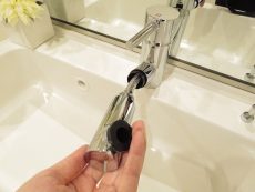 大きな一枚鏡が特徴的な洗面化粧台。無駄のない機能美を感じさせます。