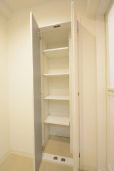 吊戸棚が設置されているので、トイレットペーパーのストックや掃除用品はこちらに