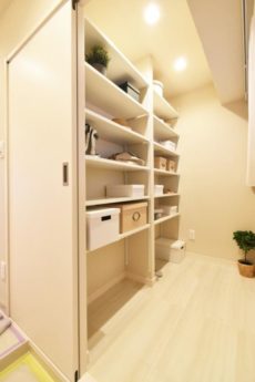 靴がたくさん置けるのはもちろん、キャリーバッグやベビーカー、ゴルフバッグなどお部屋の中にはチョット…といったものを入れておくのにも便利です。