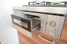 コンロは2口。グリルも付いていて調理器具も充実しています。