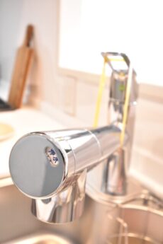 コンロは3口、グリル付き。魚イメージが強いグリルですが、肉や野菜など何を焼いても美味しく調理可能です。掃除が面倒な方には「グリラー」をおススメ。陶器製の蓋つき調理器具で、グリル以外にもトースター、電子レンジ、直火など様々な熱源で使えるので便利ですよ。水栓は浄水機能付き!