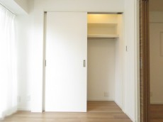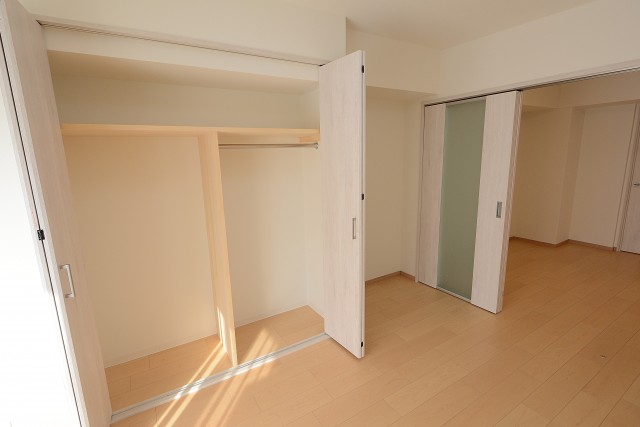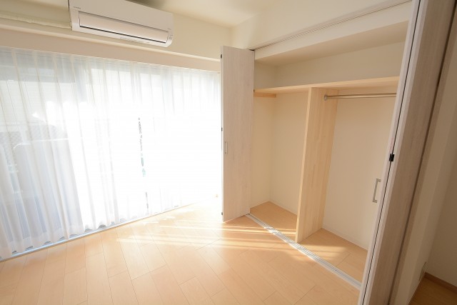 東向きバルコニーに面し、白いクロスに明るい色のフローリングと建具に合わせた内装に窓からの光が入ってとても明るい印象のお部屋です。クローゼット付き。