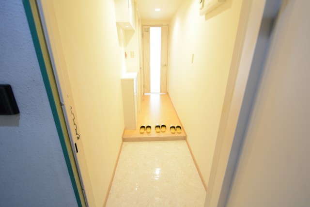 玄関先は廊下。こちら側に収納と水回りの設備があります。