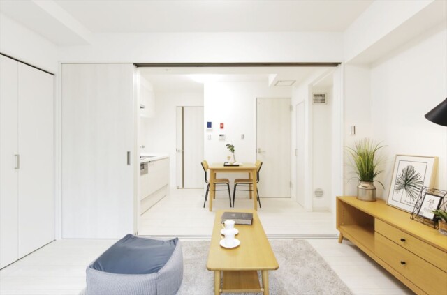 洋室はダイニングキッチンに隣接しており、2部屋は可動扉で仕切ることができます。