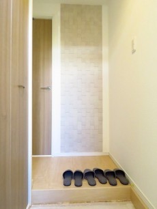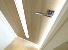玄関をあがると廊下。正面の壁面には調湿・消臭効果のあるエコカラットが使われています。窓がなく臭いが気になるエリアだけにうれしいですね。