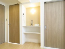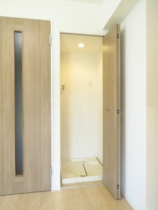 LDKの扉の横は洗濯機置場。 洗面室内にはなく、独立しています。