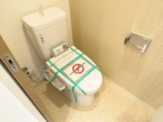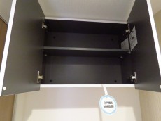 トイレはウォシュレットとペーパーのストックの保管に便利な吊戸棚が設置されています。
