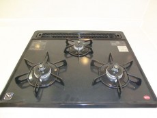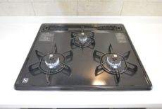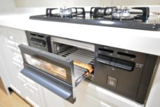 コンロは三口。グリルも付いています。グリルって魚のイメージが強いと思いますが、肉や野菜など何を焼いても美味しいんですよ。オリーブオイルをかけて焼いたアスパラやピーマンなんか最高です♬