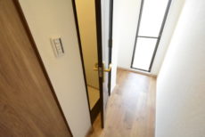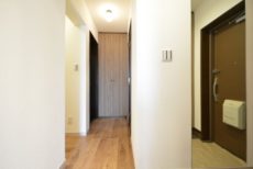 ドアを開けると正面は壁になっていて、廊下は左右に伸びています。戸口からお部屋の中が見えない構造で、宅配便やフードデリバリーなどを使う機会が増えている今の時代にピッタリですね。