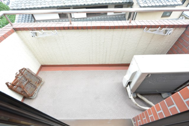 幅はありませんが奥行きがあり、立ってみると見た目よりゆったり感じるバルコニーです。物干し金具が設置されていて、お洗濯物も干せるようになっています。南向きという事で一日を通してお洗濯チャンスですね♬