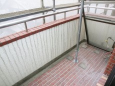 ルーフバルコニーの床もレンガ調タイルです。珍しいですね。眺望は…曇り空に加えて
