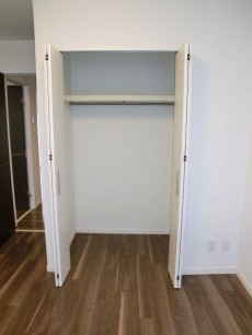 収納は間口が広くて使いやすそうなクローゼット。奥行きもあるのでスーツケースなどの嵩張る物も難なく入りますいし、衣装ケースなどで収納力アップもアリですね。