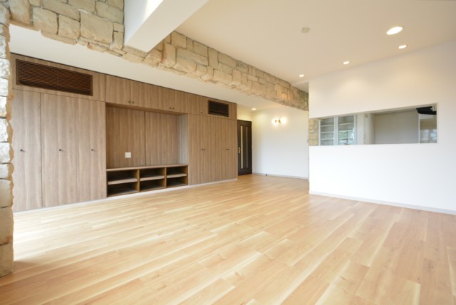 こちらは約22帖のリビング・ダイニング・キッチン。20帖超えるとさすがに広いですね!!空っぽなのでなおさらそう感じるのかもしれませんが、家具をイメージしてもこのスペースは埋まりそうにありません(笑)ちなみに、ほぼ全面に床暖房が入っているそうですよ。