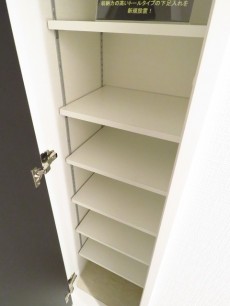 クローゼットは間口が広くて使いやすそうなタイプ。この手の収納は中が確認しやすいので無駄な買い物が減らせるらしいですよ。ほんとかな・・・(-_-;)