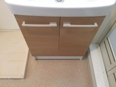 トイレットペーパーなどのストックに便利な吊戸棚付。低めに設置されているのが使いやすくて嬉しいですね。もちろん洗浄便座も付いています。TOTO製ウォシュレット。