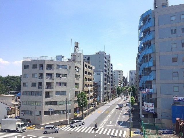 バルコニーの外はこんな感じ。真ん中の建物が邪魔な気もしますが、左右が抜けていてまずまずの眺めだと思います。右側が新宿方向にあたるのですが、天気が良ければビル群とか見えるんでしょうか?是非ご自身で確認してみてください。