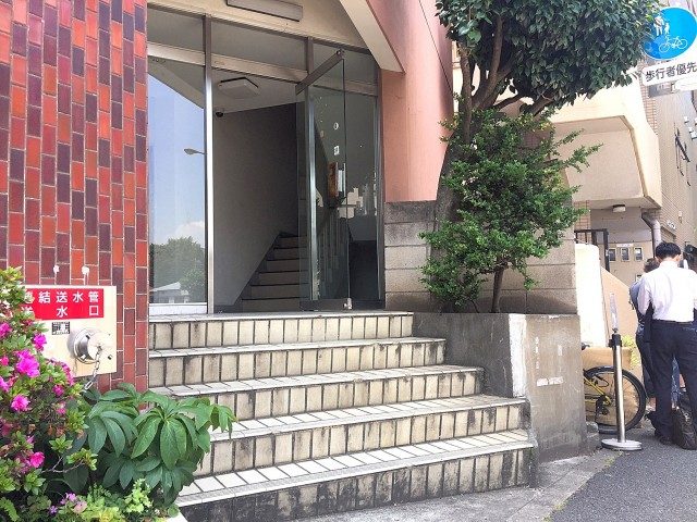 コンビニがある面から少し離れた、マンションの端の方にエントランスがあります。