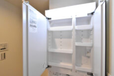 洗面台下や鏡の裏が収納になっています。大きなものから細かいものまで、バランスよく収納出来そうですね。